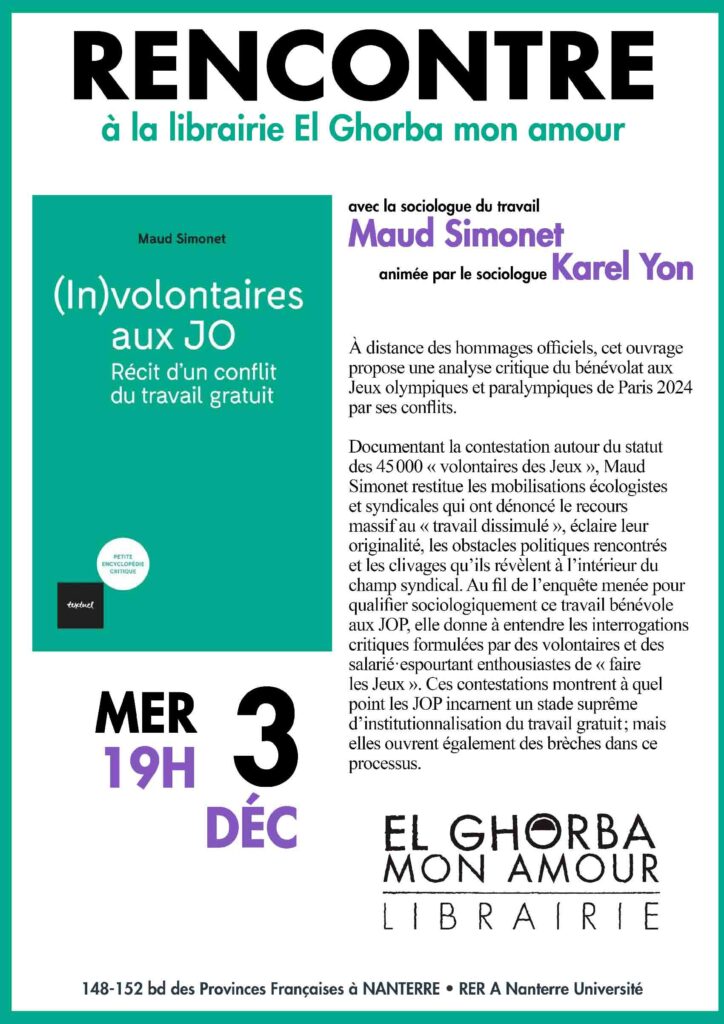 Rencontre-discussion autour du livre le 3 décembre 2025 à la librairie El Ghorba mon amour (Nanterre)